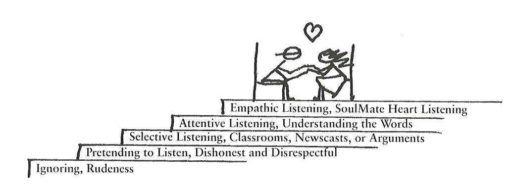 Steven Covey’s 5 Levels of Listening from his book The 7 Habits of Highly Effective People offers a good overview of the levels of listening from the least effective to the most effective. These are useful in any situation you may find yourself in where you are being asked to listen.